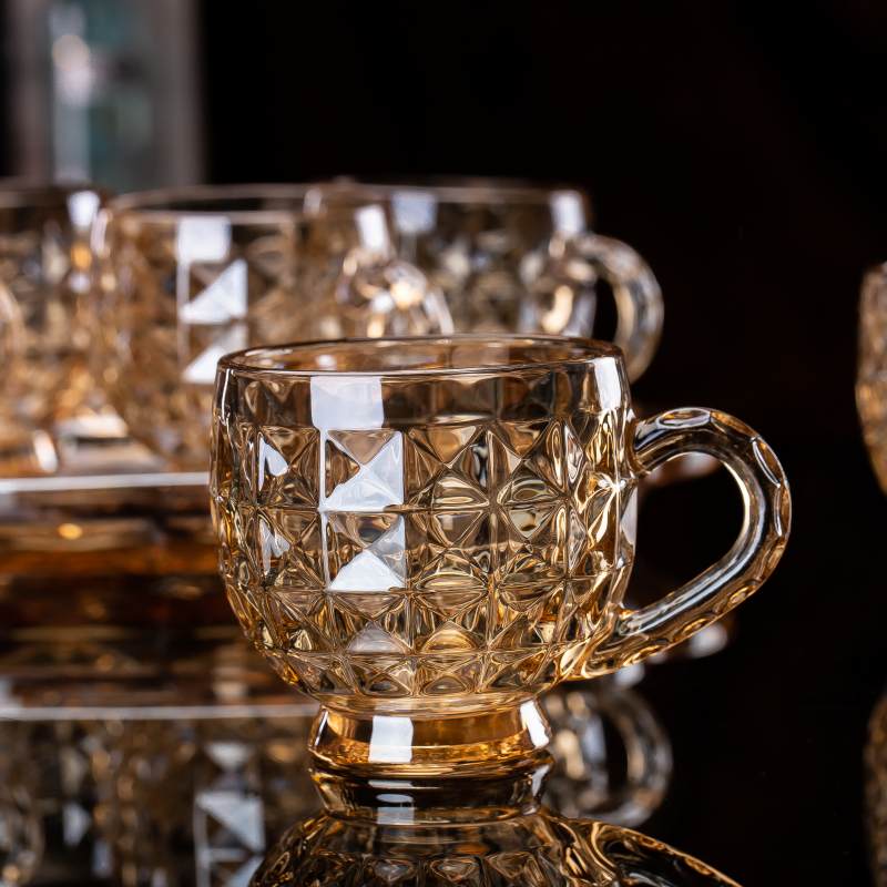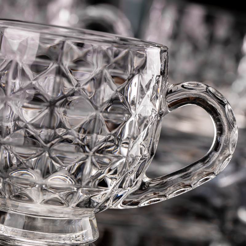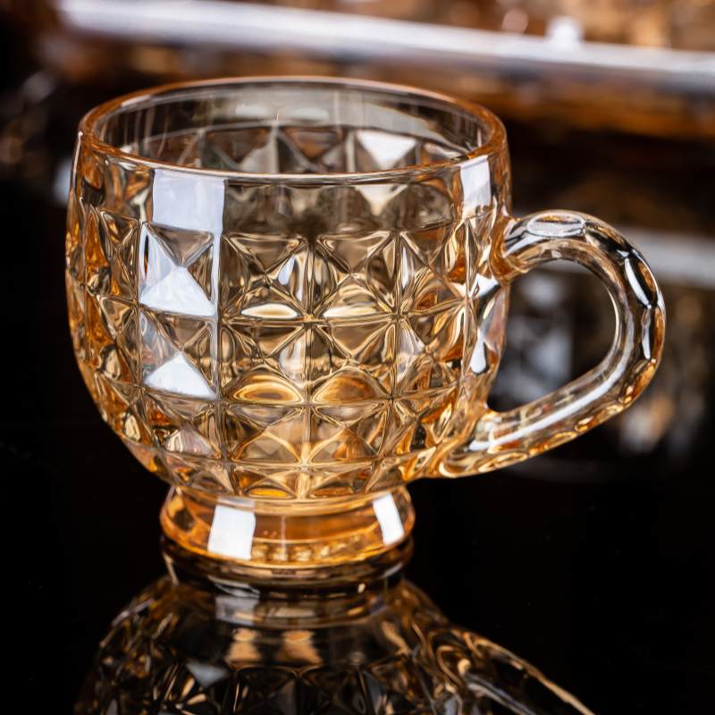 هذا كوب زجاجي مزخرف سعة 210 مل يتميز بنمط ماسي هندسي يعزز سهولة الإمساك به ويضفي عليه جاذبية بصرية. بفضل مقبضه المريح وقاعدته الثابتة، يُعدّ مناسبًا لتقديم الماء والعصير والشاي والمشروبات الخاصة ومشروبات المقاهي. مصنوع من مواد عالية الجودة. كأس من الصودا والجيريتميز الكوب بنقاء ممتاز، ومتانة عالية، ومقاومة للاستخدام التجاري اليومي. مصنع تشغل خطوط إنتاج آلية وأنظمة صارمة لمراقبة الجودة، مما يضمن جودة متسقة لـ تجار الجملةوالمستوردين، والموزعين العالميين. يدعم هذا النموذج التخصيص, تصنيع المعدات الأصلية/تصميم المعدات الأصليةوتغليف من الدرجة التصديرية للأسواق الدولية.