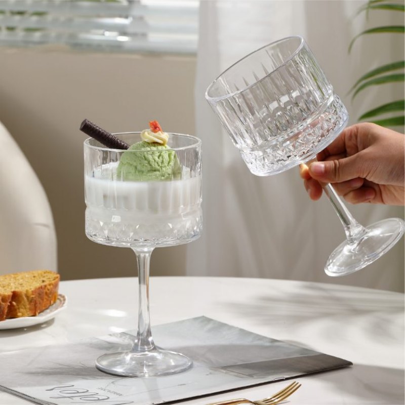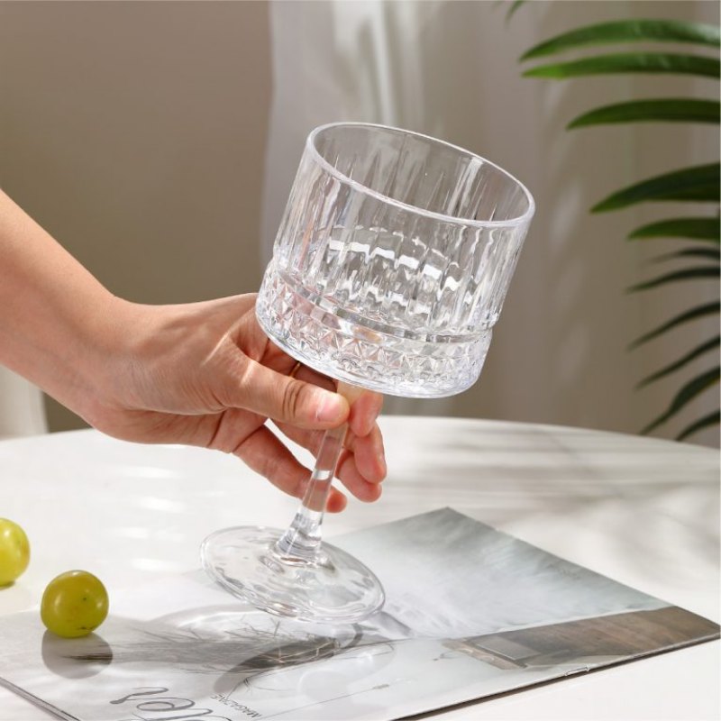 This 500ml crystal goblet features a beautifully carved bowl with vertical lines and diamond‑cut detailing, creating a sparkling visual effect under natural or artificial light.The generous capacity and wide opening make it suitable for cocktails, red wine, sparkling drinks, and signature beverages served at weddings and special events.Made from lead‑free crystal glass, the goblet ensures safety, clarity, and durability. The thick bowl and sturdy stem provide stability during high‑traffic event service.Each set of 4 is packaged in export‑safe cartons, with optional custom gift boxes for retail and brand programs.