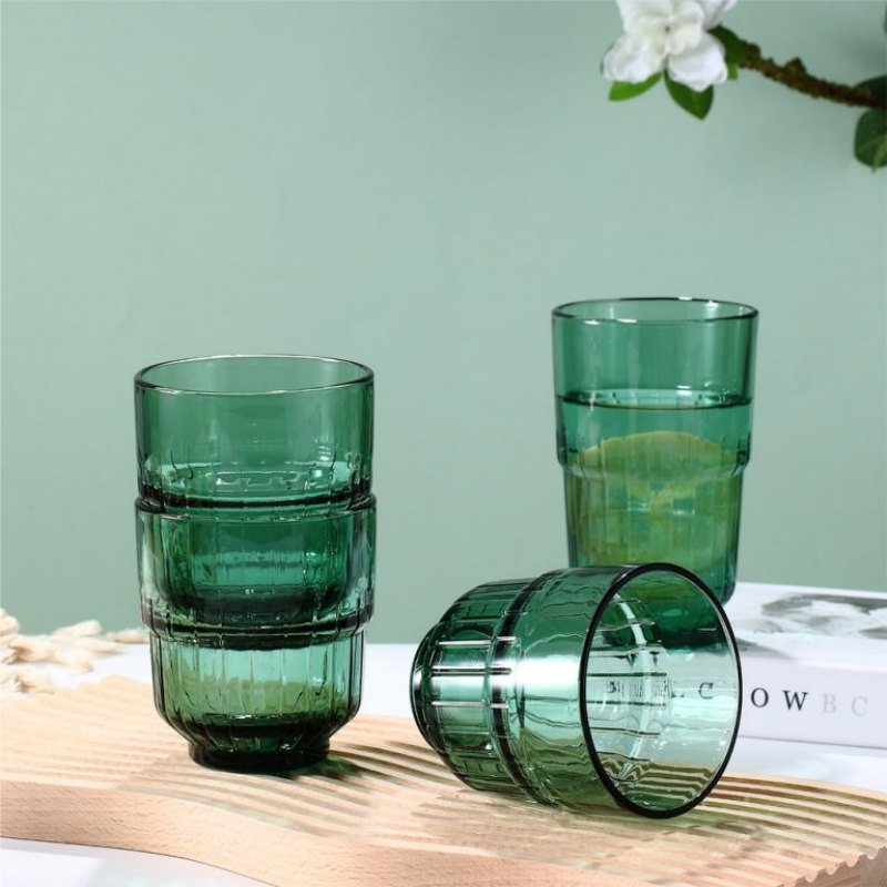 أكواب زجاجية ملونة بالجملة - أكواب شرب خضراء مضلعة سعة 400 مل للمطاعم والفنادق