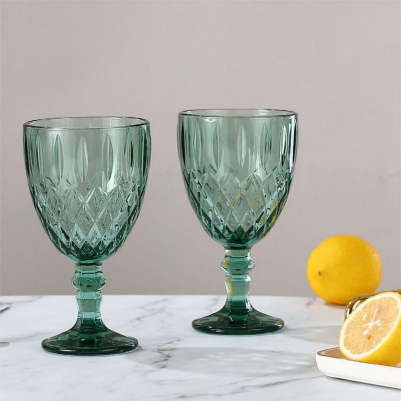 كؤوس زجاجية خضراء مزخرفة بكميات كبيرة - أدوات شرب متينة بتصميم كلاسيكي لتجهيزات المطاعم والحفلات