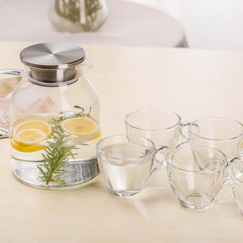 Clear Borosilicate Glass Carafe 1.6L – Durable Pitcher for Tea, Juice, and Infused Water