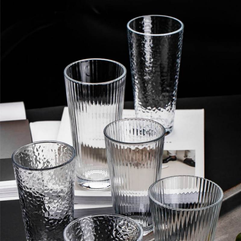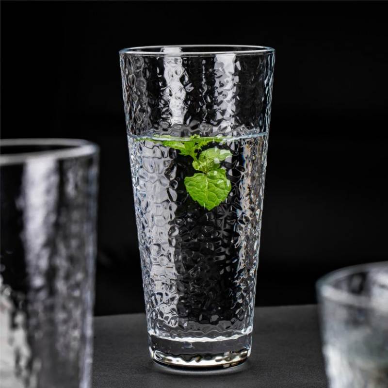 كوب زجاجي مزخرف مطروق - زجاج مضغوط شفاف لأدوات المائدة الفندقية