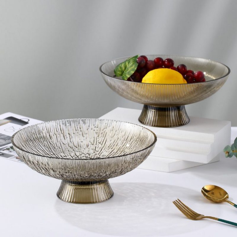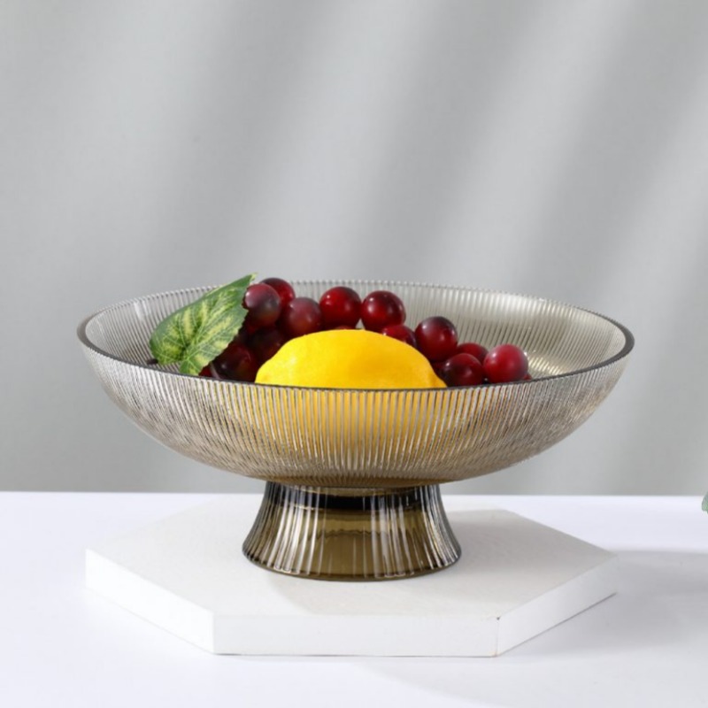 وعاء فاكهة زجاجي مع قاعدة - قطعة مركزية مزخرفة من حجر الصودا والجير للعرض في المنزل والمطاعم