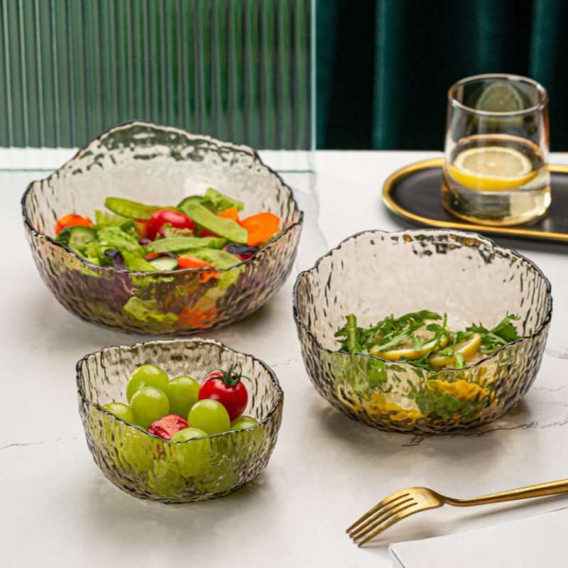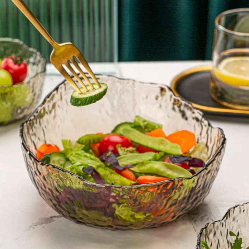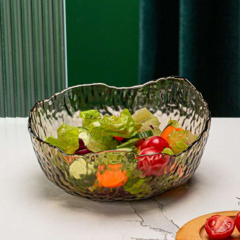 وعاء سلطة زجاجي مطروق مصنوع يدويًا | مُصنّع ومُصدّر للأواني الزجاجية بالجملة