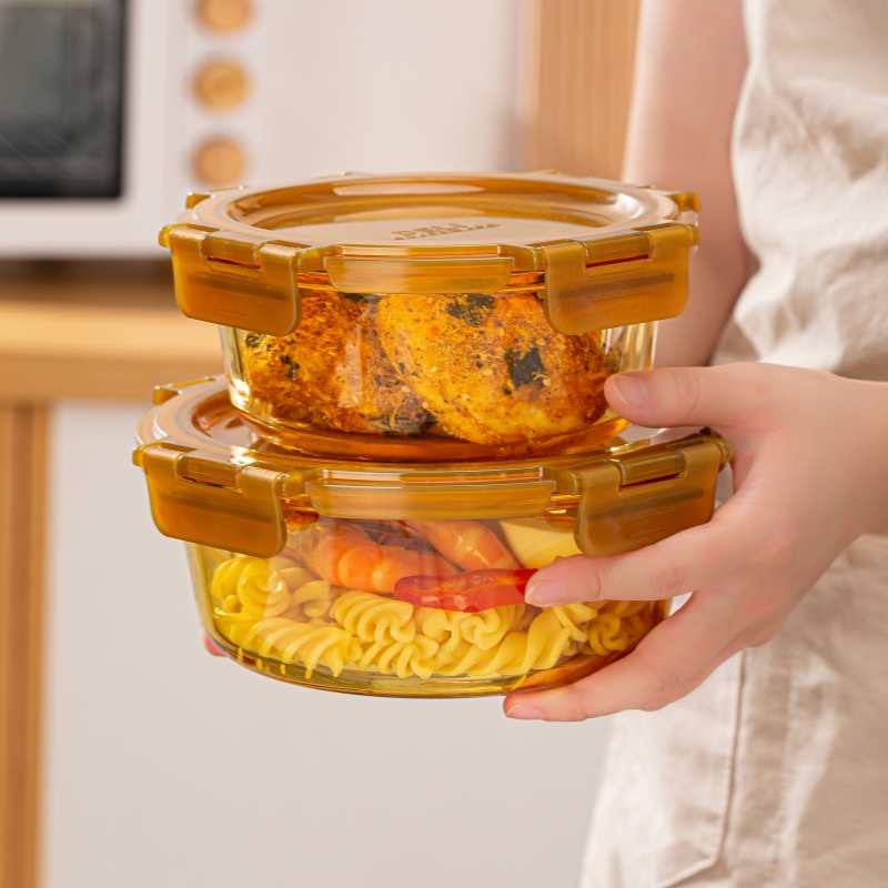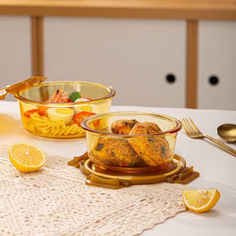 هذا صندوق تخزين الطعام الزجاجي الكهرماني مصنوع من زجاج عالي البوروسيليكات المقاوم للحرارة، مما يوفر مقاومة ممتازة للحرارة والصدمات الحرارية. آمن للاستخدام في الميكروويف والفرن والمجمد وغسالة الأطباق. غطاء سهل الفتح من جميع الجوانب يمنع التسرب والانسكاب، ويحافظ على نضارة المكونات. الزجاج الكهرماني الشفاف ليس فقط جذابًا من الناحية الجمالية، بل يساعد المستخدمين أيضًا على تحديد محتوياته بسرعة، مما يُحسّن كفاءة إدارة المطبخ.