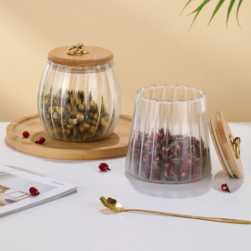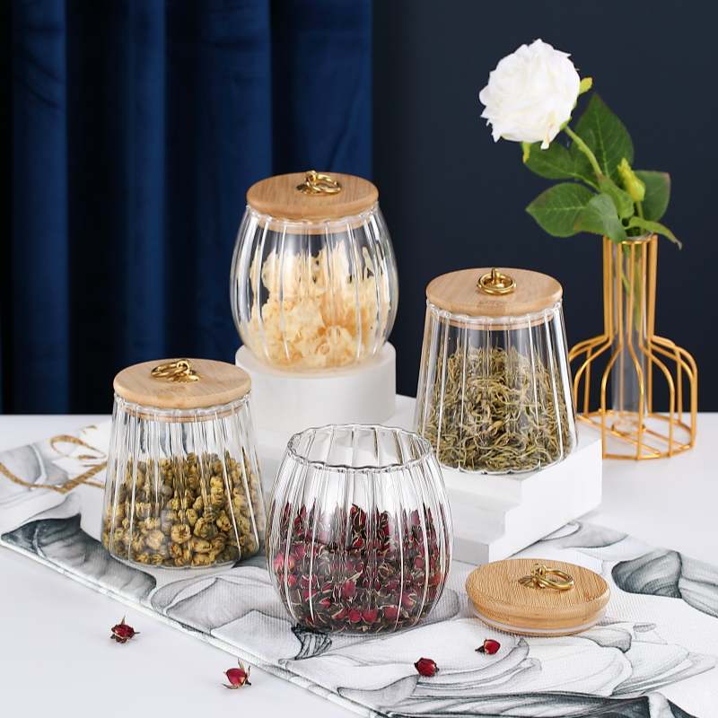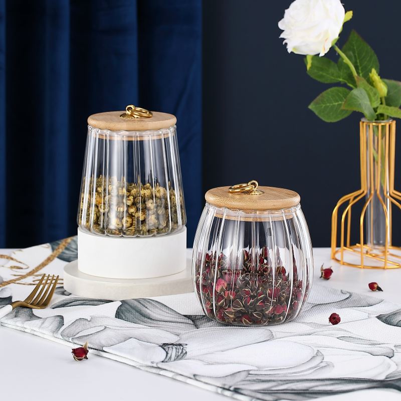 مرطبان زجاجي من تشينغ بينغ غو بغطاء خشبي محكم الإغلاق - عبوات مطبخ بالجملة للسلع الجافة والشاي والقهوة والتوابل
