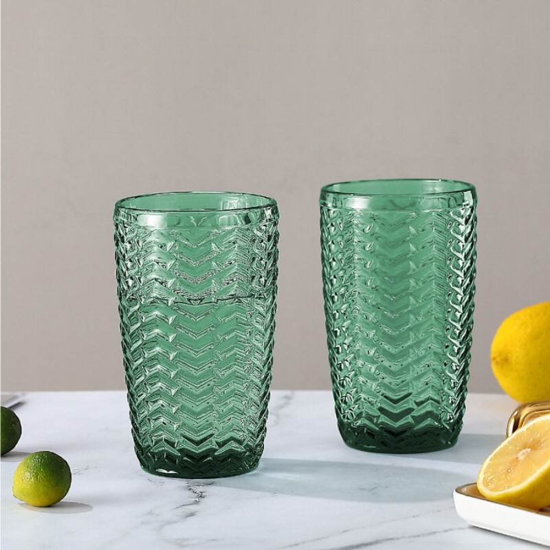Bring timeless elegance to every sip with this vintage-inspired colored glass tumbler. The embossed chevron pattern catches the light beautifully, turning simple beverages into memorable experiences. Whether serving cocktails at a chic bar, iced tea in a cozy café, or sparkling water at home, this tumbler blends artistry with practicality. More than just a cup, it’s a statement piece that adds sophistication to any setting.