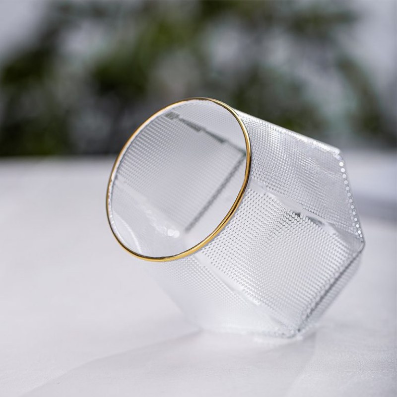 Refined and luminous, the XHES5163B Gold‑Rim Tumbler transforms everyday drink service into a sophisticated experience. The multi‑faceted glass catches light beautifully, creating a sparkling visual effect, while the delicate gold rim adds a luxurious finishing touch. Its 310ml capacity is perfect for cocktails, sparkling beverages, or elegant table water, making it a standout piece in modern restaurants, boutique hotels, and curated bar programs. For hospitality brands looking to elevate their presentation with designer gold‑rim drinkware, premium faceted tumblers, or contemporary geometric glassware, this tumbler offers a perfect balance of artistry and durability.