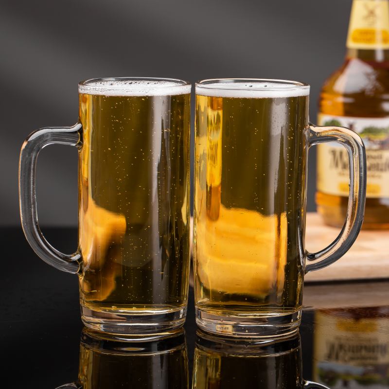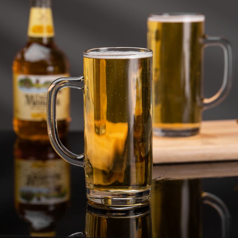 لحظة التحميص والتذوق هي جوهر البيرة. كوب بيرة زجاجي ذو قاع سميك صُمم خصيصًا لمثل هذه اللحظات. جدرانه الشفافة كالكريستال تجعل السائل الذهبي يتلألأ تحت الضوء؛ ومقبضه المتين يُحكم قبضته؛ وكل رنة كأس تُصدر صوتًا عذبًا وعذبًا. إنه أكثر من مجرد كوب بيرة، بل يُضفي أجواءً مميزة على البار ويُجسد ذكريات اللقاءات. سواءً صُمم خصيصًا لعلامة تجارية، أو استُخدم في عروض العطلات، أو كهدية للشركات، فإنه يُعزز التجربة ويزيد من قيمة العلامة التجارية.