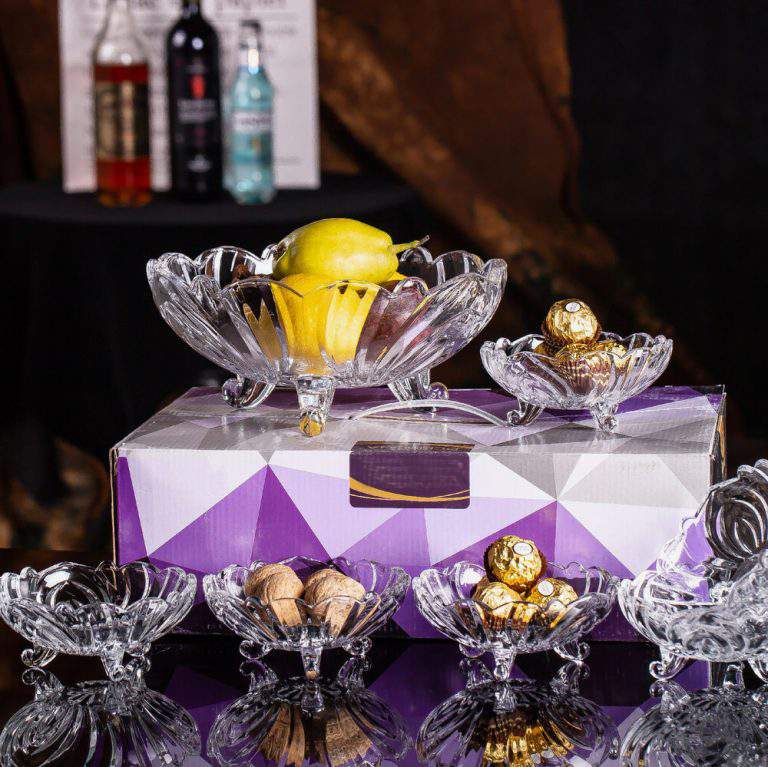 Bring timeless elegance to your tabletop with the XHDSTG26L glass candy jar set. Inspired by blooming petals, each bowl showcases a floral silhouette and curved legs that blend vintage charm with modern clarity. Whether used for festive candy buffets, afternoon tea snacks, or home décor, this 7-piece soda lime glass set adds a refined touch to any setting. The crystal-clear glass captures light beautifully, making it ideal for gift packaging, lifestyle collections, or interior styling.