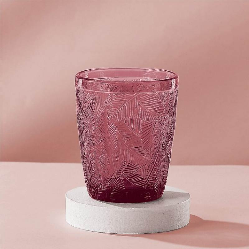 كوب زجاجي وردي منقوش بأوراق شجر للبيع بالجملة - أدوات شرب مزخرفة للمطاعم والفنادق
