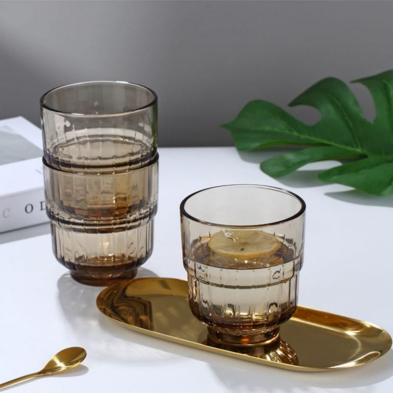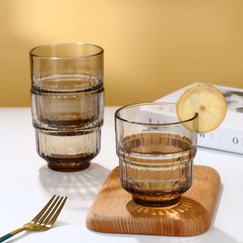 كوب زجاجي بلون كهرماني سادة بالجملة - كوب ملون سعة 340 مل لتقديم المشروبات والمياه