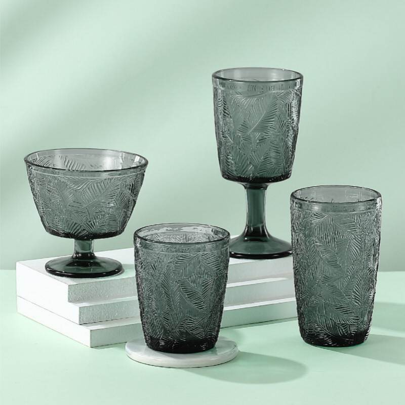 Bring elegance to every sip with our embossed solid color glass cups. Inspired by natural leaf patterns, each tumbler reflects a blend of artistry and functionality. Whether serving cocktails, iced tea, or sparkling water, the vibrant colors and textured design create a memorable drinking experience. More than just glassware, these cups tell a story of craftsmanship and style—making them a centerpiece for dining tables, cafés, and lifestyle brands.