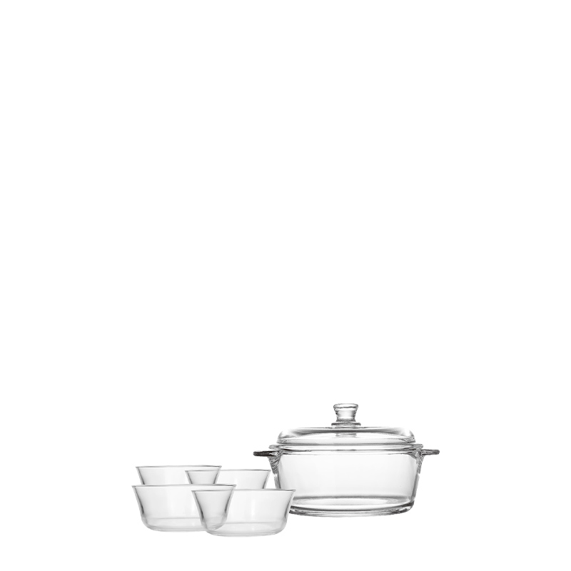 3.5‑Piece Multi‑Capacity Set (901–1200 ml) Includes one lidded casserole and four matching bowls, ideal for food prep, storage, serving, and buffet presentation.
