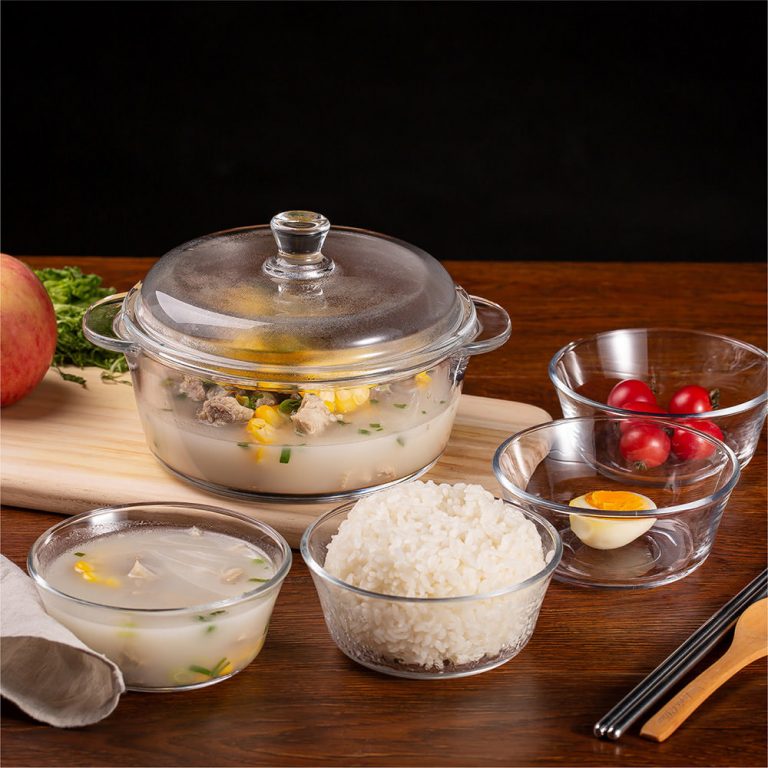 Wholesale Transparent Glass Cookware Set – 5pcs Heat-Resistant Bowls and Casserole Dish