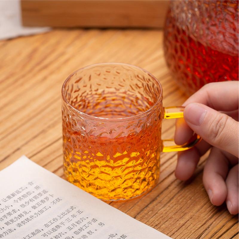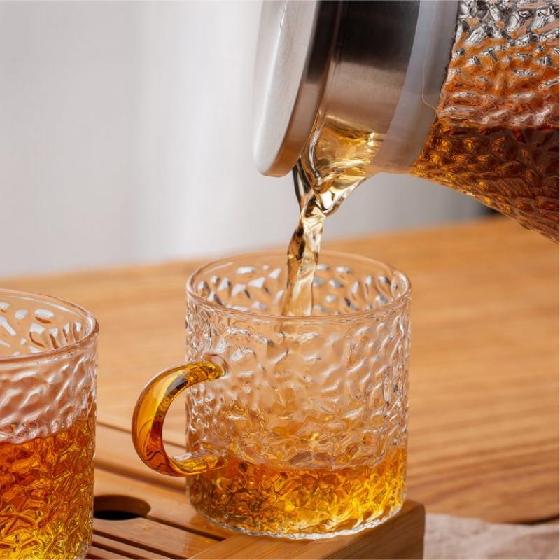 Stylish, modern, and full of personality — the XHGPH41‑L5 set brings a refreshing look to any dining table. The hammered glass texture sparkles under light, while the colorful handles add a playful touch. Perfect for serving tea, juice, iced drinks, or cocktails at home, in cafés, or during gatherings.