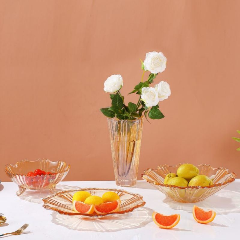 يُضفي طبق الفاكهة XHDSW2047H، الدافئ والساحر وذو الملمس الجميل، لمسةً عتيقةً أنيقةً على أي مائدة طعام. يمنح لونه الكهرماني وحافته المُزخرفة مظهرًا يجمع بين الحنين إلى الماضي والحداثة، مما يجعله مثاليًا لتقديم الفاكهة والحلويات والمعجنات، أو كقطعة مركزية أنيقة في المنازل والمقاهي العصرية.