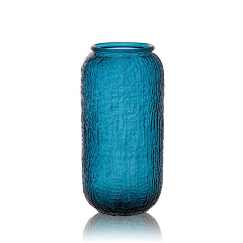 مزهرية زجاجية أسطوانية زرقاء مزخرفة من شينغهو، 260 مم - مزهرية ديكور منزلية مطلية، مناسبة للمتاجر، وتنسيق الزهور، والتصميم الداخلي