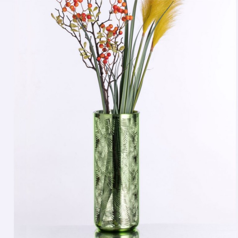 مزهرية زجاجية خضراء منقوشة من شينغهو، مقاس 300 مم - قطعة مركزية مزخرفة مطلية لتزيين المنزل، مناسبة لمشاريع البيع بالتجزئة والتصميم الداخلي (XHHP53G)